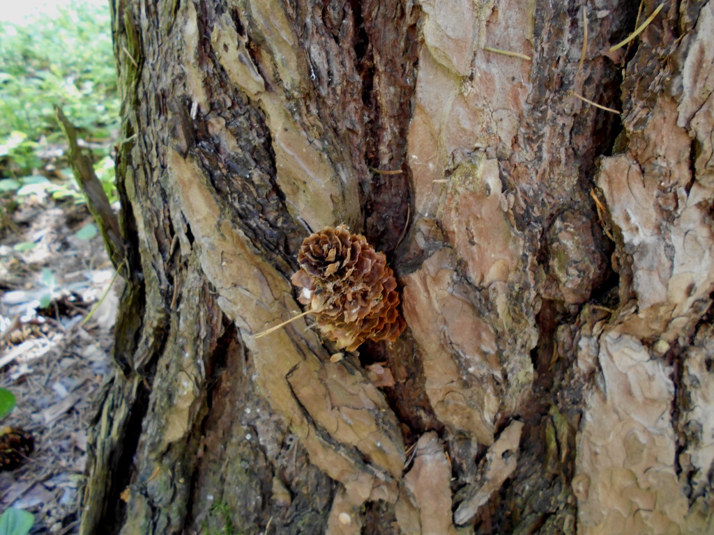 | Z szyszkami wiążę się jeszcze jeden znany fakt z życia dzięcioła. Otóż ptak ten ma sprytny, choć trochę bałaganiarski sposób na „dobieranie się” do wnętrza szyszki. Sposób polega na zatknięciu szyszki w szczelinę w korze drzewa, a czasem między wystające sęczki. Rozłupanie tak unieruchomionej szyszki i wydłubanie z niej językiem nasion nie jest już problemem. Dzięcioł wybiera sobie do tego zwykle jedno drzewo na dłuższy czas. Miejsce takie nazywamy kuźnią dzięcioła. Łatwo je poznać, ponieważ pod nim poniewiera się mnóstwo wyjedzonych, „oskubanych” szyszek.