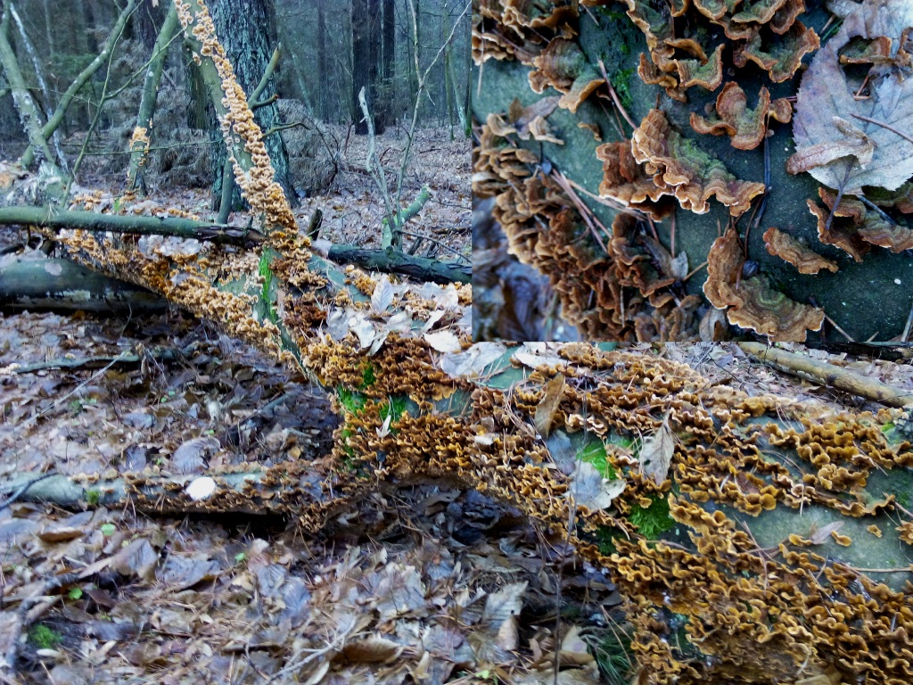 b) Stereum hirsutum lub Stereum subtomentosum (łac.)