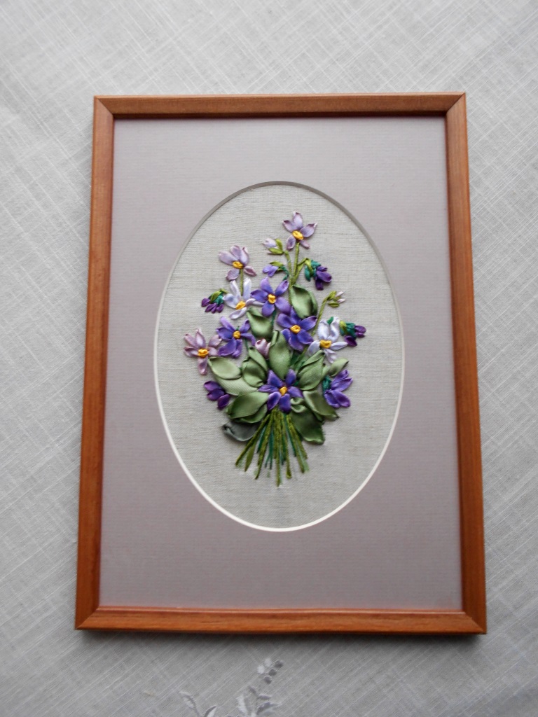Na pamiątkę spotkania Pan Andrzej otrzymał fiołki wyhaftowane przez Krystynę Leszczyńską.