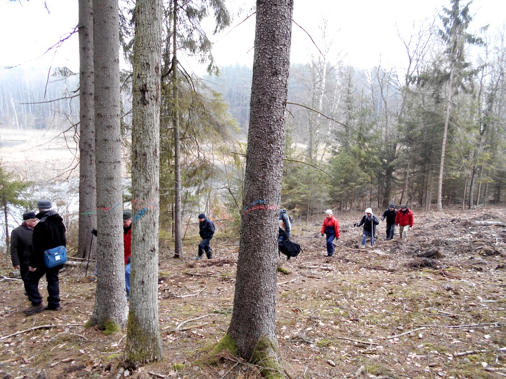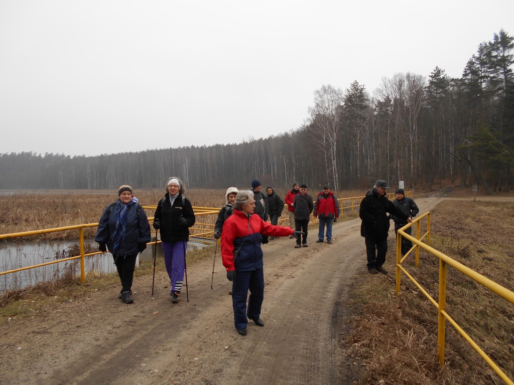 Sobotni rajd – 6 lutego, był bardzo długi. Oczywiście na specjalne życzenie uczestników. Wytrenowani jesiennymi i zimowymi rajdami, zażyczyli sobie dłuższej trasy. Jak dłuższa to bardziej interesująca, ale też trochę męcząca. Ale coś za coś. Obeszliśmy rozlewiska w Leśnictwie stary Dwór.