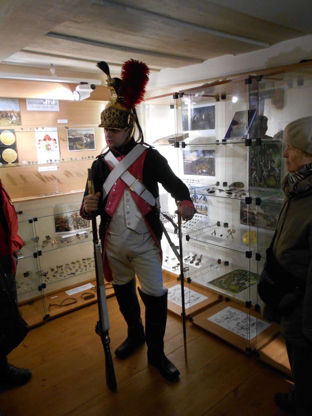 Na piętrach domów organizuje się różne wystawy czasowe. Oglądaliśmy wystawę malarstwa i historyczną, gdzie przewodnikiem był dorodny dragon z czasów napoleońskich.