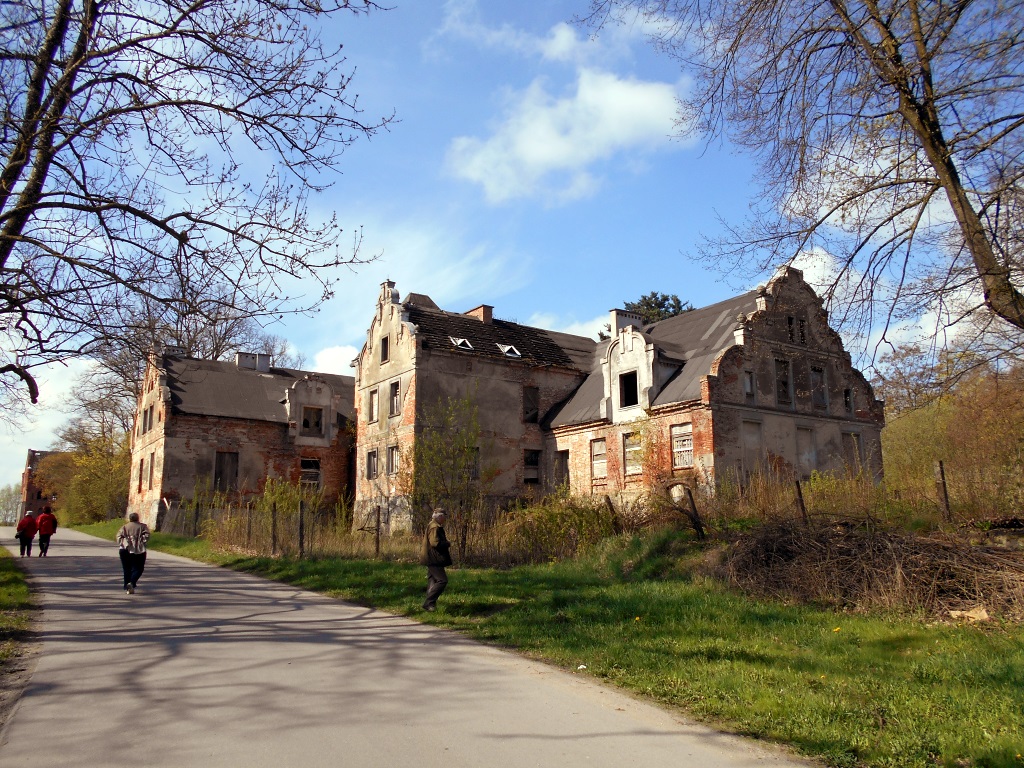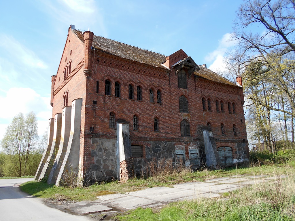 W pobliżu dworu stoi duży zabytkowy spichlerz.