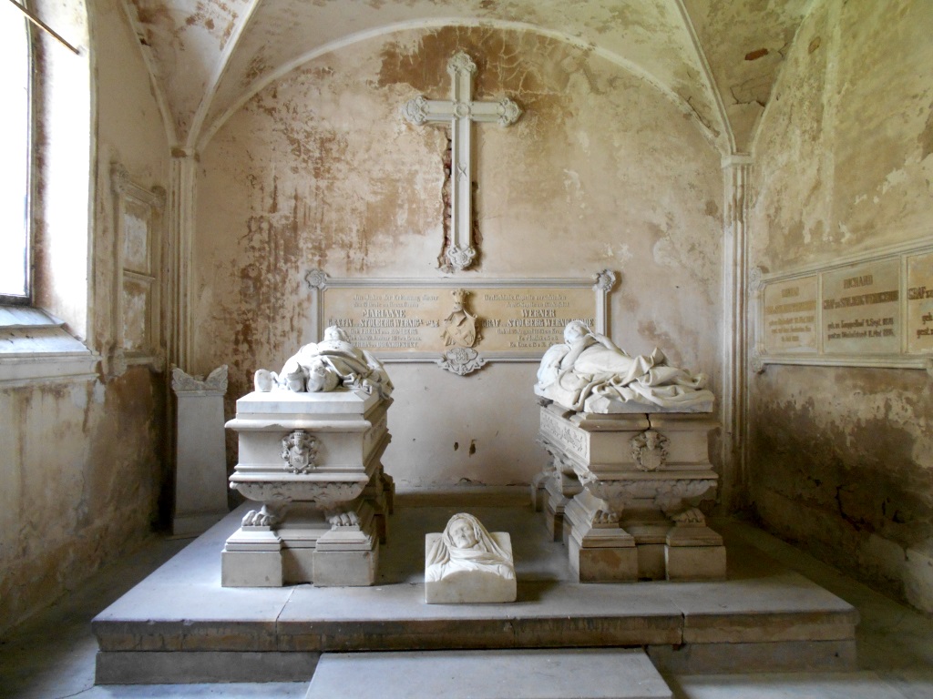 Znalazły się tam tumby ostatnich drogoskich Denhofów – Stanisława Ottona Denhofa, i jego siostry, Angeliki zu Dohna, zmarłej w 1866 r. Znajdują się tu leżące postacie naturalnej wielkości wykute przez Edwarda Lürssena w białym marmurze. Ściany kaplicy zdobią epitafia członków rodziny Stolberg-Wernigerode. Jest to jedyna znana kaplica memoratywna w dawnych Prusach Wschodnich.