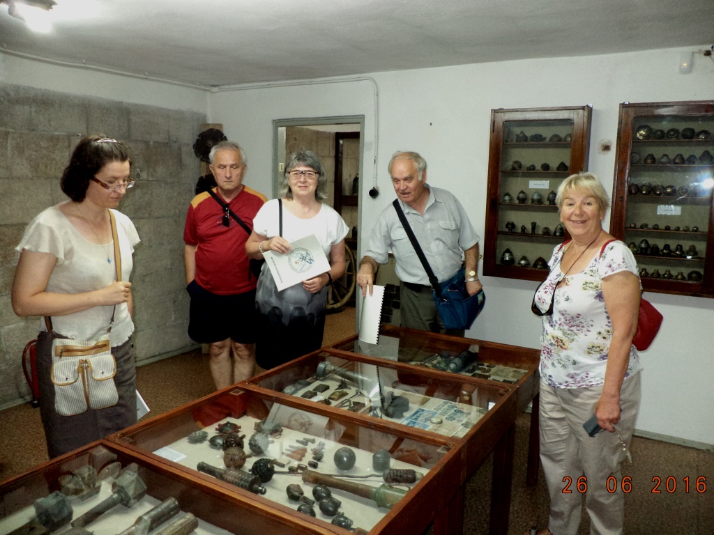 Pozdrowienia z Krakowa przesłali Zosia i Waldek Chrzanowski oraz Stefania i Antoni Jarczykowie. Zwiedzali Kraków i jak przystało na członków Koła, które ma w swojej nazwie ” Militaria” udali się do Fortu 51 ½ „Swoszowice” zbudowanego w latach 1897-1898. Podstawowym jego zadaniem było zwalczanie we współpracy z sąsiednimi fortami nieprzyjacielskiej piechoty idącej do szturmu od strony Wróblowic i wzdłuż Traktu Wiedeńskiego (obecna Zakopianka) oraz wspieranie obrony fortu „Rajsko”. Główne uzbrojenie, w postaci czterech lekkich armat, umieszczono w nim pod osłoną obrotowych wież pancernych (złomowanych niestety w okresie okupacji niemieckiej). Fort tworzą: schron bojowo-koszarowy otoczony wałem ziemnym ze stanowiskami piechoty, obronna wartownia w przejeździe przez wał oraz otaczająca całość fosa.