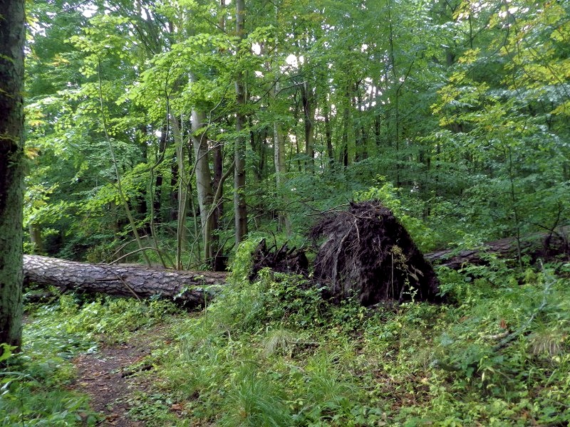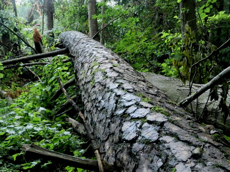 Dwie potężne sosny powalone koło leśniczówki Stawiguda, jak bliźniaczki – „rozeszły” się w przeciwnych kierunkach.