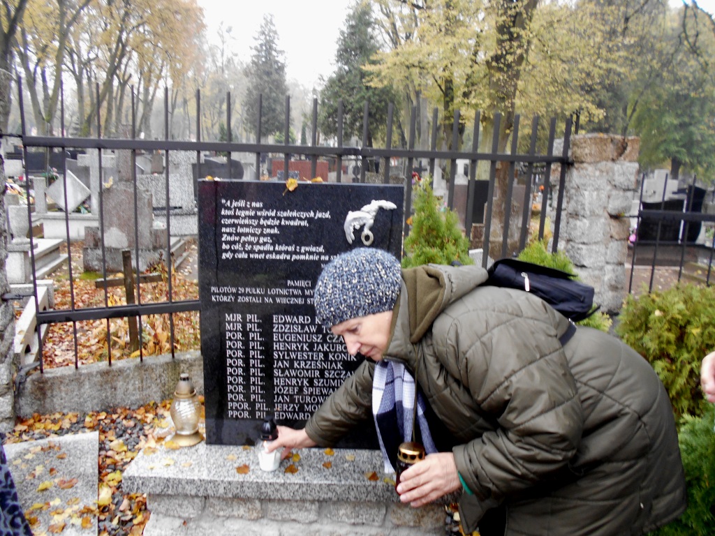 Wyjeżdżając z Ornety zapaliliśmy znicze przy tablicy upamiętniającej lotników, którzy zginęli w trakcie służby w orneckiej jednostce.