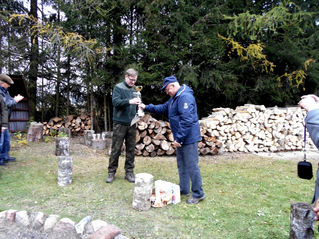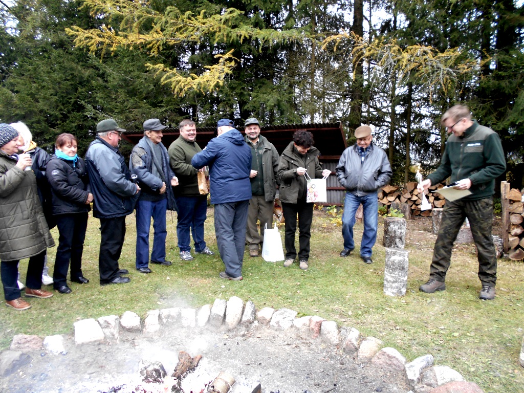 A w ramach naszej wdzięczności, przy ognisku, które kończyło nasze spotkanie w gościnnym Nadleśnictwie, Prezes Koła Anatol Leszczyński przekazał puchar z napisem: