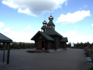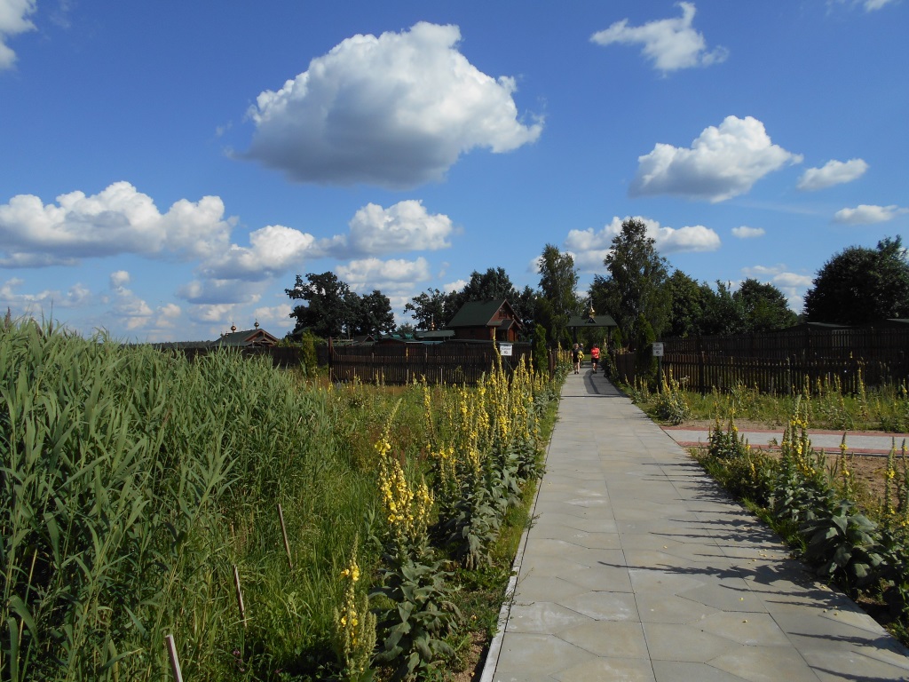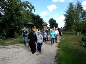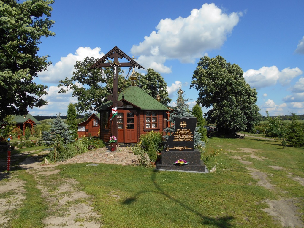 Kolejnym urokliwym miejscem naszej wędrówki po Podlasiu był Skit w Odrynkach, do którego doszliśmy 800 m szeroką kładką przez rozlewiska Narwi.