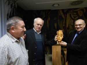Niespodzianką okazała się rzeźba, którą wykonał i podarował Ryszard Chudziakiewicz naszemu koledze Antoniemu Jarczykowi. Gratulujemy talentu obu panom, bo przecież doskonale wiemy, że Antoni jest też człowiekiem wielu talentów : maluje, rzeźbi, zajmuje się metaloplastyką………….