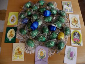 Dołączamy zdjęcie wstążeczkowych jajek i pocztówek, które przekazaliśmy wraz z życzeniami współpracującym z nami przyjaciołom.