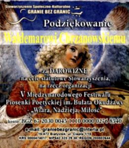 Otrzymaliśmy podziękowanie od Anatola Borowika Prezesa Stowarzyszenia Społeczno-Kulturalnego ” Granie bez Granic”.