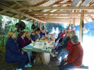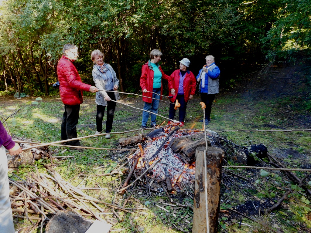 Zmęczeni konkursowymi zmaganiami, posililiśmy się pieczonymi na ognisku kiełbaskami. Dziękujemy Leśniczemu Panu Wojciechowi Dąbrowskiemu za udostępnienie wiaty.
