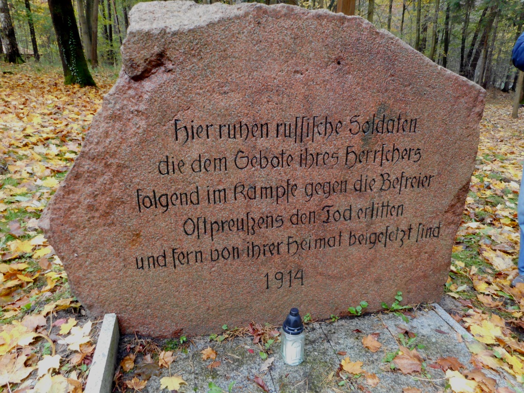 Według niektórych danych pochowanych jest tutaj 21 lub 157 rosyjskich żołnierzy poległych w końcu sierpnia 1914 roku. Obecnie teren ten został oczyszczony z krzewów i podrostów drzew, a obok dawnego głazu umieszczono duży prawosławny krzyż.
