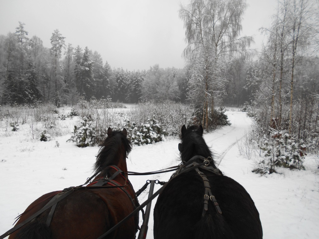 Z miejsca zbiórki nastąpi przejazd saniami lub wozami ( w zależności od warunków pogody ) do siedziby stadniny.