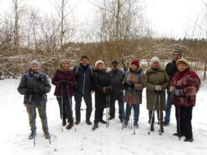 23 lutego 2019 roku – sobotni rajd jeszcze po śniegu. Śnieg, trochę mrozu, wymarzona pogoda do zimowych, leśnych wędrówek…. i do wspomnień. A jest co wspominać. W kwietniu minie 10 lat jak wędrujemy, zwiedzamy ciekawe miejsca, poznajemy nadleśnictwa i pracę leśników, uczymy się podczas comiesięcznych wykładów w RDLP w Olsztynie, strzelamy, haftujemy, fotografujemy………….., sadzimy kolejne „swoje lasy”, sprzątamy las, dokarmiamy zwierzęta, obchodzimy kolejne święta religijne i takie świeckie jak „Walentynki”, tańczymy…………To tylko niektóre rzeczy, które robimy wspólnie. I to jest chyba najważniejsze – robimy to razem. Zawiązały się nowe znajomości a nawet przyjaźnie. Cieszymy się na kolejne spotkania, na których rozmawiamy, żartujemy – zapominamy o kłopotach, taka terapia bez udziału psychologów.