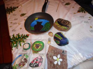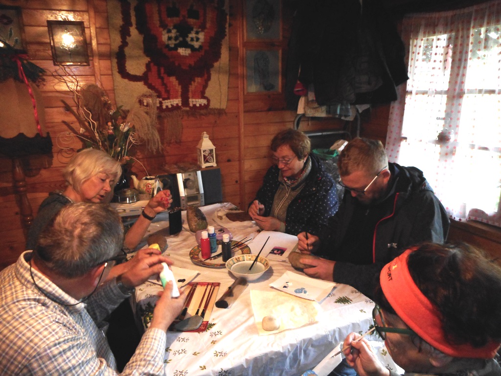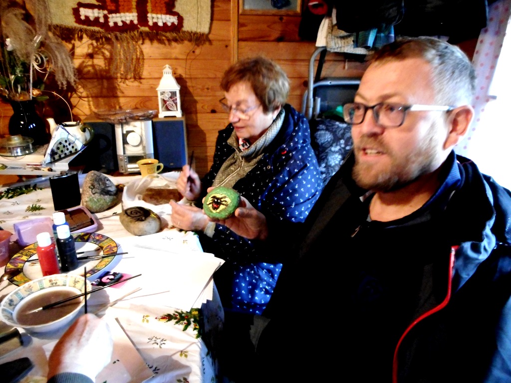 16 maja 2019 r. Tolek Leszczyński zaprosił członków Koła do kolejnych warsztatów, w czasie których powstały ozdoby do ogrodu. Poprzednio były to wycinane z drewna zajączki, tym razem było to malowanie na kamieniach.