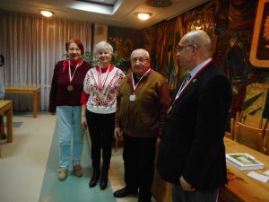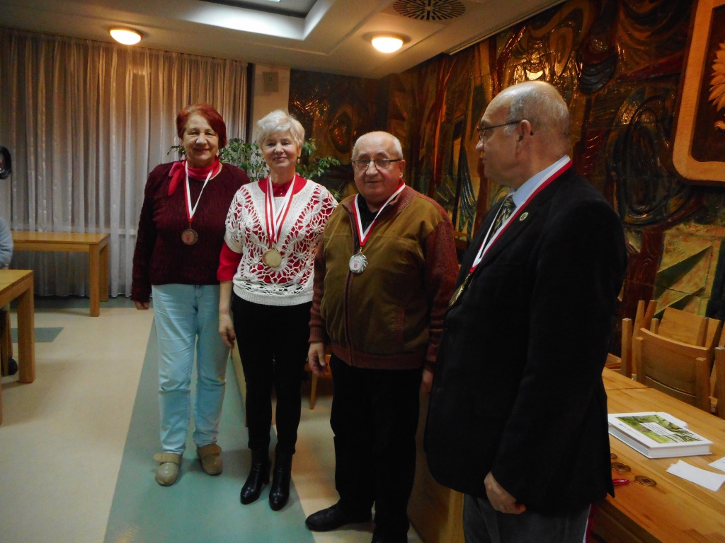 Czwartkowe spotkanie było okazją do wręczenia nagród, medali, odznaczeń. I tak Basia Bruzgo uhonorowana została Medalem 75-lecia Zasługi Dla LOK, Małgosia Sachnowska otrzymała nagrodę książkowa, za wygranie konkursu o firmie Wipasz, medale wręczono zwycięzcom Sylwestrowych Zawodów Strzeleckich oraz członkom Koła / którzy nie mogli odebrać wcześniej/ za ukończenie „Rajdu na Azymut” oraz medale 101 Rocznicę Niepodległości.