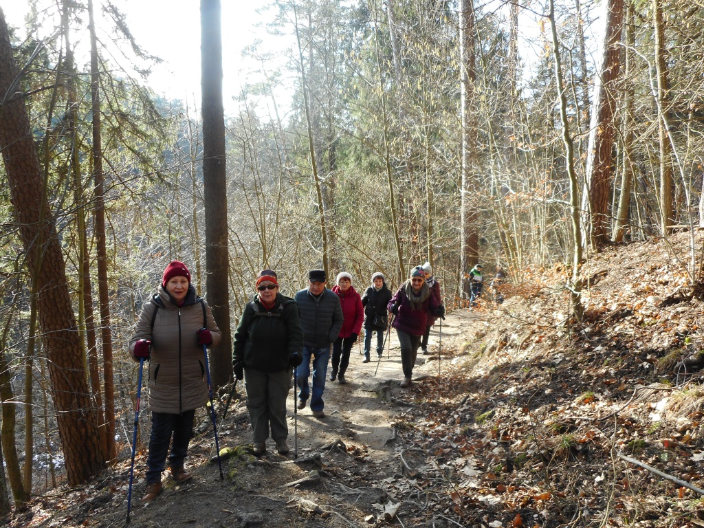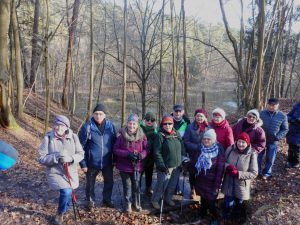 8 lutego 2020 roku wędrowaliśmy wzdłuż Jeziora Długiego, Jeziora Podkówka a następnie pięknymi terenami nad Łyną. Pogoda była piękna, wiec frekwencja też dopisała, nikt nie spieszył się do domu. Mogliśmy z przyjemnością zażywać „kąpieli leśnych”.