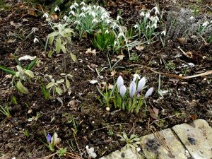 Wiosna przyszła tego roku bardzo szybko. Pierwsza połowa marca a w lesie przylaszczki, przebiśniegi, śnieżyce, a na działce nad Wadągiem wszystkie te wiosenne kwiaty i jeszcze dorodne krokusy. Podejrzewam, że Tereska specjalnie na sobotni spacer ubrała się w kolory pasujące do ……..