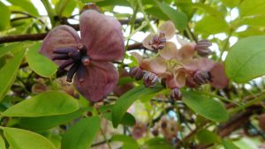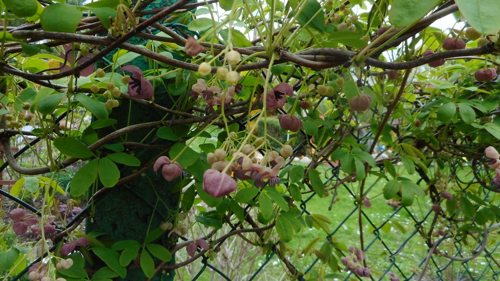 Na zdjęciach zamieszczonych w poprzednim wpisie jest akebia i aksamitka, którą rozpoznała Wiesia Filipek. Akebia pozostała tajemniczą rośliną, a więc trochę o niej.