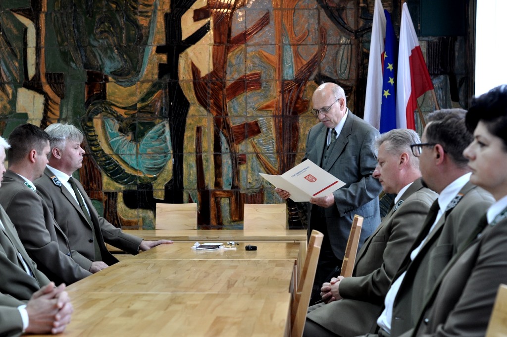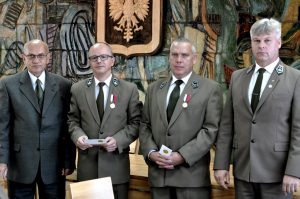 „Zasłużeni dla Ligi Obrony Kraju leśnicy – z Dyrektorem RDLP w Olsztynie Adamem Roczniakiem na czele – otrzymali honorowe odznaczenia i medale.