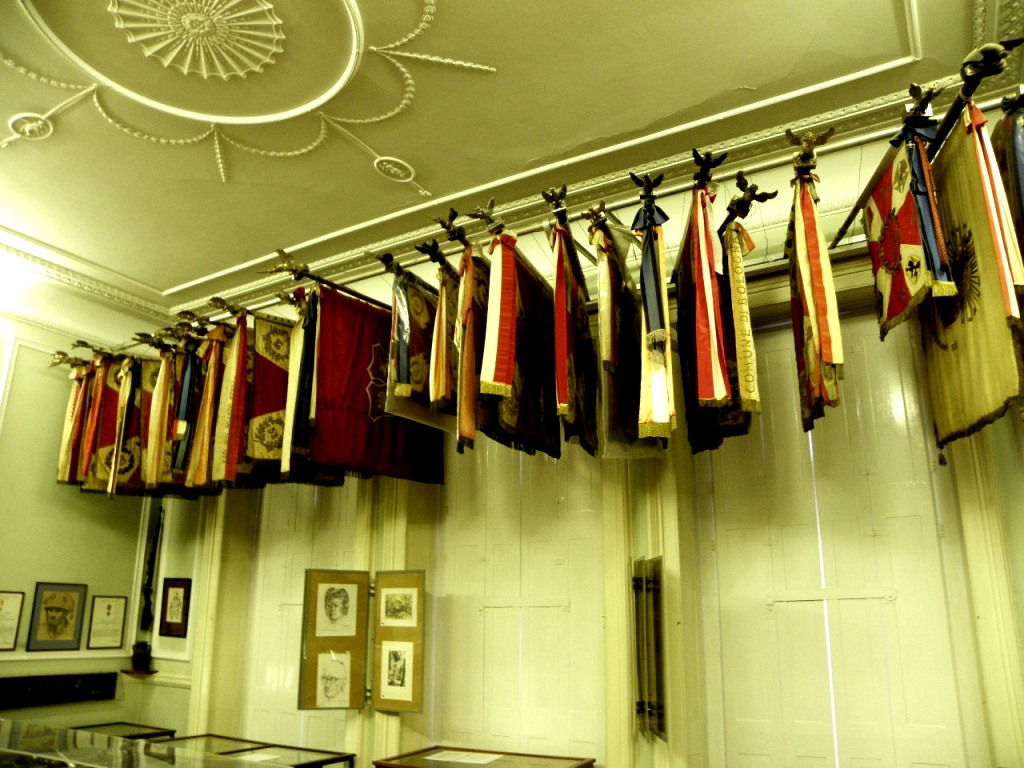 Wśród eksponatów na pierwszym miejscu należy wymienić kilkadziesiąt sztandarów. Przeważają wśród nich sztandary jednostek Polskich Sił Zbrojnych na Zachodzie, ale jest też kilka ocalonych z kampanii wrześniowej. Należy do nich chociażby sztandar 14 Pułku Ułanów Jazłowieckich, najpierw cudem uratowany w czasie szarży pod Wólką Węglową 19 września 1939 r., a później przechowany w Warszawie w trakcie okupacji i powstania warszawskiego. Z pamiątek po Polskich Siłach Zbrojnych na Zachodzie wyróżnia się też sztandar 1 Samodzielnej Brygady Spadochronowej, uszyty na prośbę gen. Stanisława Sosabowskiego w okupacyjnej Warszawie i dostarczony wiosną 1944 r. do Wielkiej Brytanii w ramach operacji Most I. Obok sztandarów można znaleźć też flagę biało-czerwoną i proporzec 12 Pułku Ułanów Podolskich, wywieszone na gruzach klasztoru w Monte Casino zaraz po jego zdobyciu.