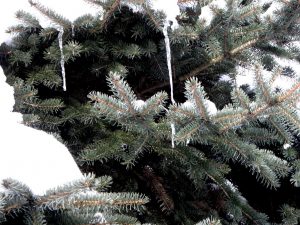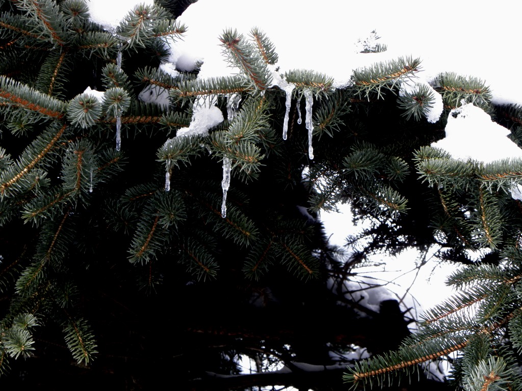 Zima, zimą, ale dzień coraz dłuższy, słonko przygrzewa i zauważyliśmy nietypowe ozdoby na naszym świerku. Czyżby to nowe przybranie to nadchodząca wiosna?