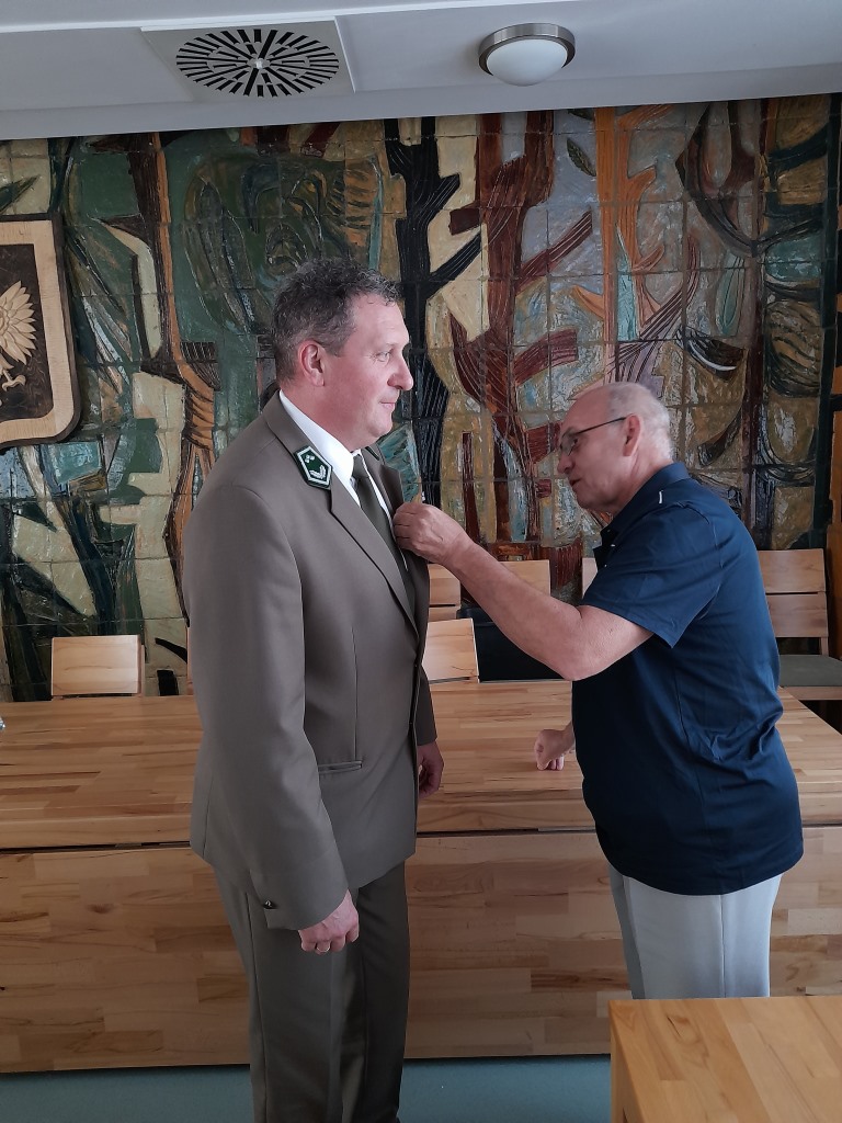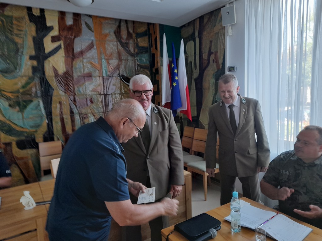 W dniu 06.07.2021 roku, w Regionalnej Dyrekcji Lasów Państwowych w Olsztynie, odbyła się roczna narada poświęcona zagadnieniom ochrony mienia i zwalczania szkodnictwa leśnego. Pośród pracowników Straży Leśnej oraz zaproszonych przedstawicieli Policji, Państwowej Straży Łowieckiej i Państwowej Straży Rybackiej nie zabrakło również Pana Anatola Leszczyńskiego Prezesa Koło Miłośników Lasu i Militariów Ligi Obrony Kraju przy ATW w Olsztynie, który w obecności Pana Wojciecha Matuszaka Zastępcy Dyrektora ds. Gospodarki Leśnej oraz gości wręczył honorowe odznaczenia dla członków Koła, będących funkcjonariuszami Straży Leśnej. W dniu 5 lipca bieżącego roku formacja ta obchodziła 75 lecie powołania Straży Leśnej w Polsce.