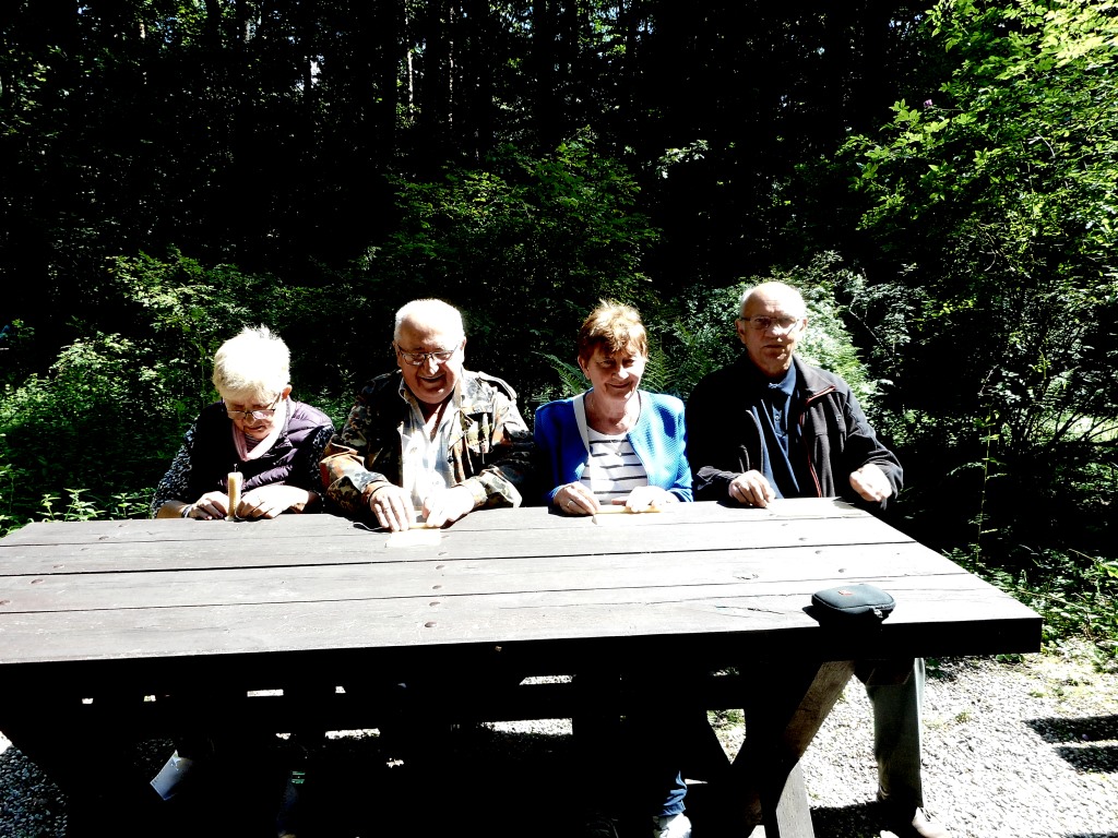 Jeszcze więcej informacji pozyskaliśmy podczas sobotniego pobytu w Leśnym Arboretum w Kudypach. Przeszliśmy „Ścieżką Pszczelarza”, zapoznaliśmy się z tablicami i mogliśmy odpowiedzieć na pytania, które zawarte były na kartkach, które nam wręczono na początku naszej wędrówki. Poprawne odpowiedzi były podstawą do otrzymania nagrody, które związane były z obchodzonym świętem. Niektóre wiadomości były zaskakujące np. pszczół robotnic może być w ulu 60000, pszczoła robotnica żyje 35 dni, truteń 50, dzika pszczoła w ciągu minuty może oblecieć 35 kwiatów, masa nektaru przenoszonego przez pszczołę robotnicę może stanowić nawet 70 % jej ciała.