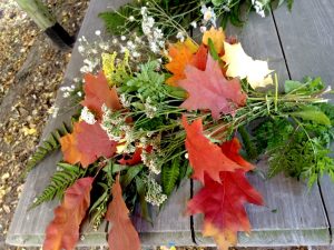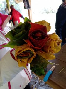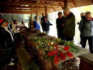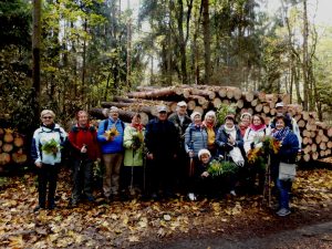 Trochę nas zestresował prezes Tolek Leszczyński, gdy podczas przerwy w czasie sobotniego rajdu, oznajmił, że czeka nas „gra terenowa” . Ciągnęliśmy karteczki na których wypisane były bardzo różne zadania do wykonania. Trzeba było wykorzystać materiały znalezione w lesie i wykonać np. wiązankę z liści, wiązankę kwiatową, leśne zwierzątko, znaczek itd.