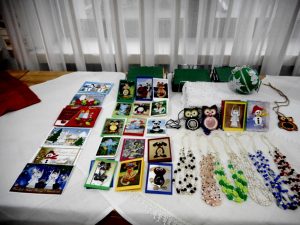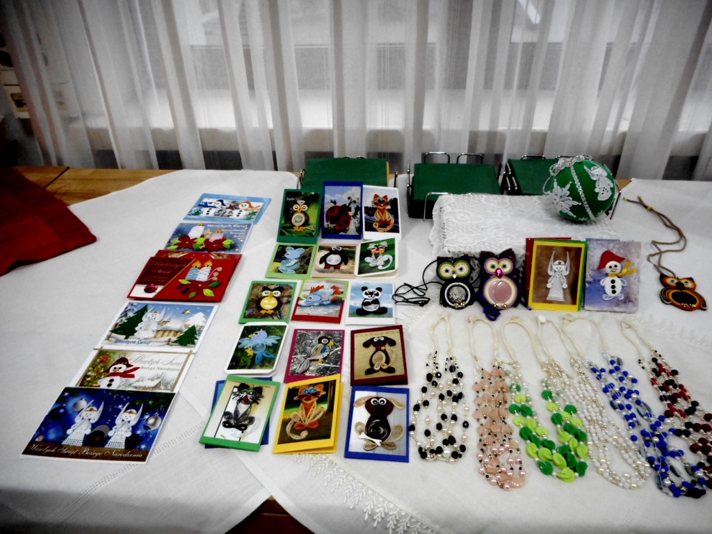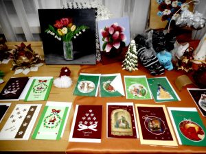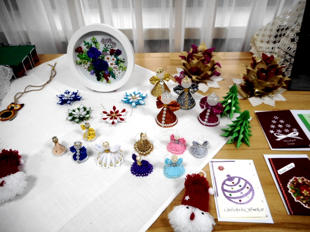 W czasie zebrania koleżanki z kółka rękodzielniczego Wiesia Filipek, Jasia Kluczek i Bożenka Błaszczuk przygotowały wystawę, która przypomniała nam,że święta zbliżają się wielkimi krokami. Były aniołki, bombki, pocztówki…..a więc Boże Narodzenie tuż tuż … Piękne, kolorowe i bardzo urozmaicone cudeńka.