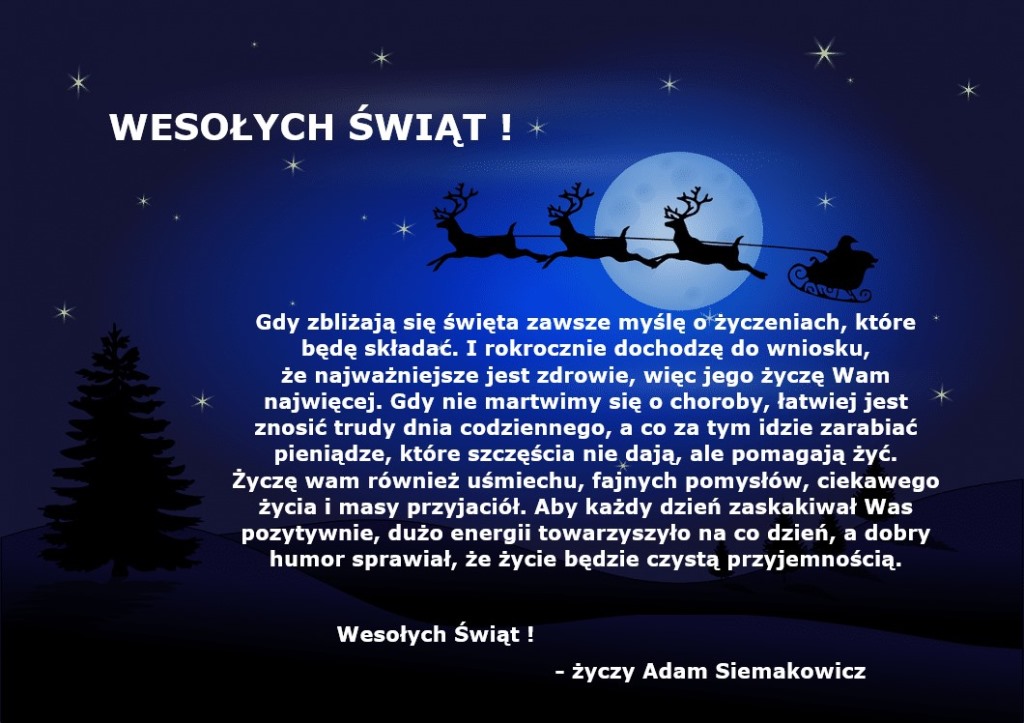 Życzenia jakie przysłał nasz Kolega Adam Siemakowicz. Dziękujemy !