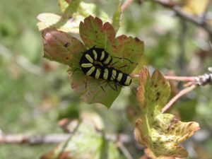 Gąsienica, która wygląda, jakbyśmy mieli do czynienia z jakimś egzotycznym gatunkiem. Po całości jest smoliście czarna z jaskrawymi, żółtymi plamami na wierzchu każdego segmentu. Dodatkowo, boki każdego z nich są zaopatrzone w długie, czarne wypustki, które nadają jej nietypowego, wręcz dziwacznego wyglądu. Ni to włoski, ni to kolce, dlatego mogło by się wydawać, że stanowią jedynie ozdobę gąsienicy. Nic jednak bardziej mylnego.