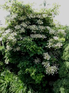 Puszyste wielobarwne krzewy doskonale ozdabiają nam naszą działkę. Zwykle spotykana jest hortensja krzewiasta, ale są także hortensje pnące w kształcie lian. Te zakwitają najwcześniej / zdjęcie z czerwca/ i pięknie wyglądają do końca sezonu.