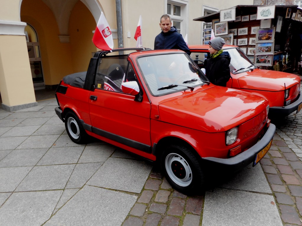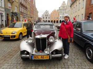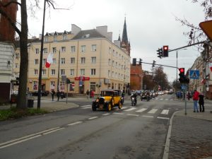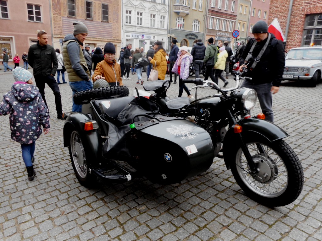 Byliśmy na starówce, gdzie można było zobaczyć stare samochody i motocykle, które później przejechały ulicami Olsztyna