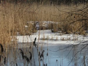 Bóbr europejski to gatunek dosyć liczny i rozpowszechniony w Polsce. Można go spotkać nad większością rzek i jezior, w tym oczywiście nad rzeką Wadąg, która opływa „naszą wyspę”. Oprócz masy uszkodzonych drzew , wokół wyspy, zobaczymy też żeremia, czyli charakterystyczne sterty gałęzi skrywające suchą komorę, w której mieszka bobrza rodzina. Szczególnie teraz widoczne są bobrze mieszkania, nie zasłaniają je krzewy, sitowia…