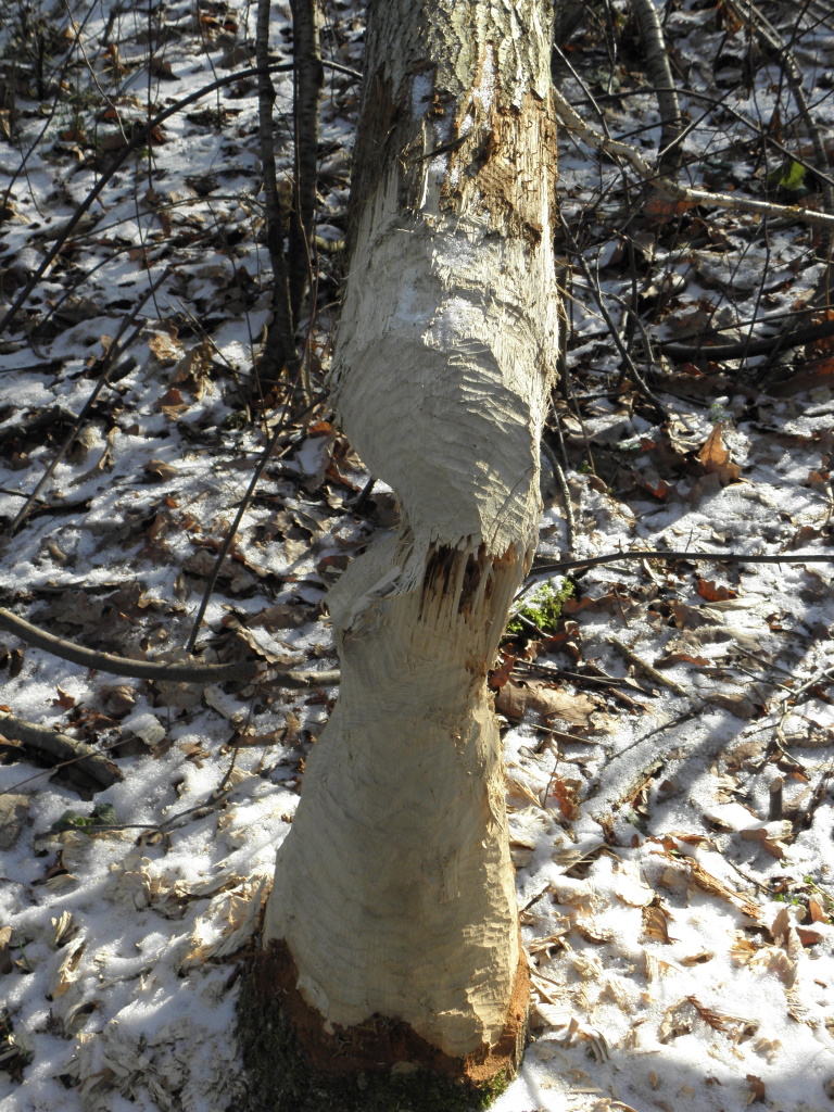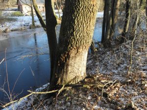 Nie do końca rozwiązana łabędzia zagadka…………………………….., ale bobry żyją z nami cały rok. Co prawda zobaczyć je trudno, ale ślady ich działalności widzimy owszem na każdym kroku, albo inaczej na co którymś ściętym „w ołówek”drzewie