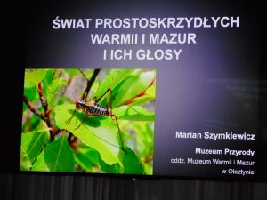 Na czwartkowym spotkaniu 7 grudnia 2023 roku w RDLP w Olsztynie , Pan Marian Szymkiewicz wprowadził nas w świat owadów prostoskrzydłych, które występują na Warmii i Mazurach. Za oknem zima, nasypało śniegu a my z Panem Marianem „przenieśliśmy się” na łono przyrody, gdzie spacerując słuchaliśmy głosów świerszczy, pasikoników i kilkudziesięciu innych prostoskrzydłych. Mogliśmy je zobaczyć, posłuchać o ich zwyczajach, budowie, gdzie występują na Warmii i Mazurach – a więc w środowisku, w którym żyjemy. Zapachniało wiosną, latem, kwiecistą łąką.