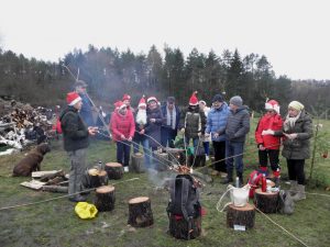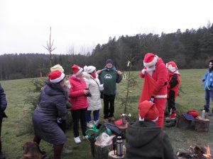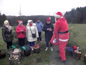 Od lat członkowie Koła Miłośników Lasu i Militariów LOK przy ATW w Olsztynie, przed Bożym Narodzeniem, ubierają choinkę w lesie. Przyozdobiona jest marchewkami, jabłuszkami, kawałkami słoninki i innymi smakowitościami, którymi mogą ucieszyć się zwierzątka leśne. W tym roku ubraliśmy trzy choinki w Wojtkowym Lesie, czyli lesie zarządzanym przez Leśniczego Wojciecha Dąbrowskiego. Jest to Leśnictwo Stary Dwór w ramach Nadleśnictwa Kudypy. Była to wspaniała impreza, ognisko, kiełbaski, śpiewanie kolęd a później Wielka Niespodzianka – odwiedził nas pokaźnego wzrostu Mikołaj z prezentami. Nie wierzycie? No to zobaczcie………..