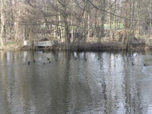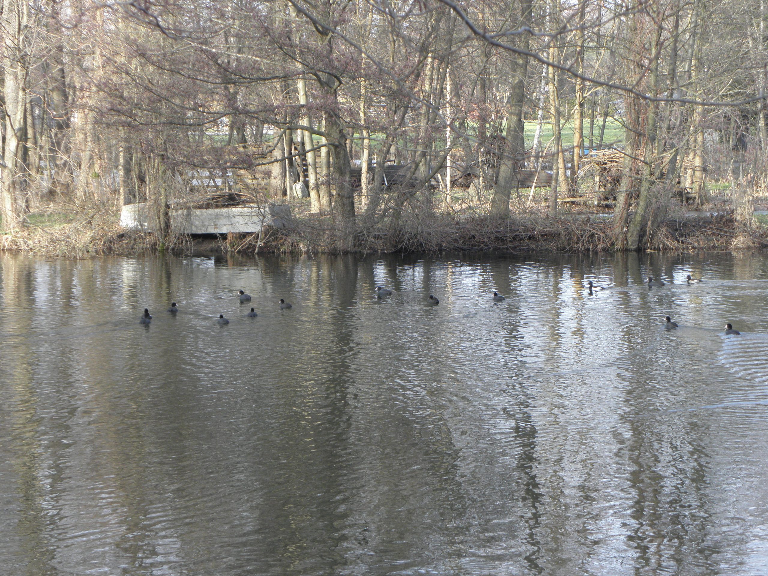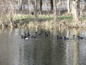 Autorem zdjęć jest Anatol Leszczyński, łyski a także inne ptaki pływały na rzece Wadąg 28 stycznia 2024 roku