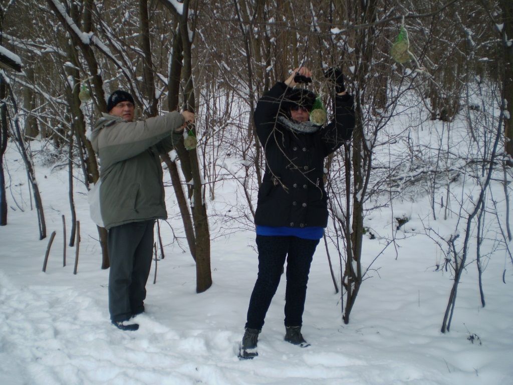 Na krzewach rozwiesiliśmy „pyzy” – taki mały prezent dla ptaszków.