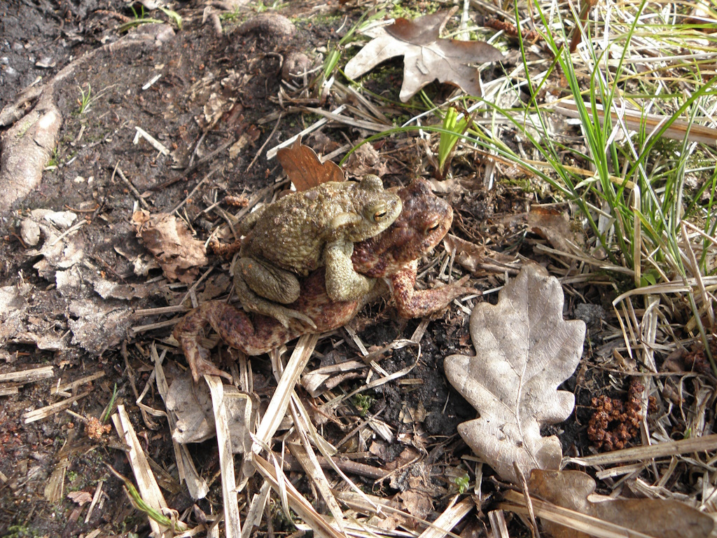 Pierwsze do godów przystępują żaby moczarowe. Są to wyjątkowe żaby, gdyż podczas godów barwa samców zmienia się na niebieską, a ich rechot przypomina odgłos bulgoczącej wody. Gatunek ten jest wrażliwy na zanieczyszczenia, dlatego stanowi wskaźnik czystości wody i środowiska. Zaraz po żabach moczarowych swoje gody zaczynają ich więksi kuzyni – ropuchy.