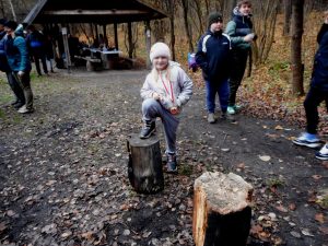 Następnie wspólnie zaśpiewaliśmy kilka znanych piosenek, korzystając z wydrukowanych śpiewników. Na zakończenie spotkania odbył się leśny poczęstunek. Były ciasteczka, cukierki, przy ognisku pieczono kiełbaski.