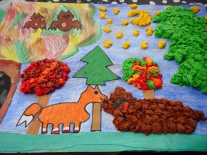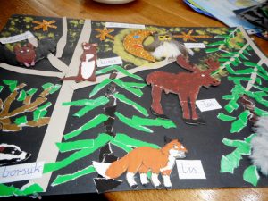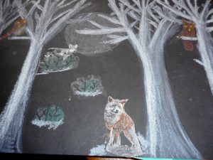 Trudno przedstawić opracowania przygotowane przez młodzież. To są prawdziwe albumy z ilustracjami , z dużą częścią opisową, ale załączę kilka prac przesłanych w ramach grupy klas 1-3, pod tytułem „Las nocą”.