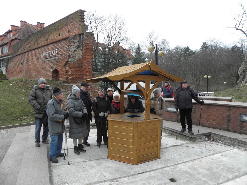 Członkowie Koła Miłośników Lasu i Militariów LOK przy ATW w Olsztynie w sobotę, 8 lutego 2025 roku, spotkali się przy Wysokiej Bramie na olsztyńskiej starówce. Zgodnie z planem sobotni rajd rozpoczęliśmy od spaceru po starówce, przeszliśmy kolo Kościoła Ewangelickiego, pomnika Mikołaja Kopernika, weszliśmy do Amfiteatru im. Czesława Niemena. Od niedawna stanęła tam niecodzienna i nietypowa instalacja „Studnia obietnic” Jak się okazuje jest to akcja MOK w Olsztynie, który pod nazwą „Obietnice” chce zwrócić uwagę na to, jak wielką moc mają słowa. Ciekawiej ta instalacja wygląda w godzinach nocnych, gdy skierujemy wzrok do jej wnętrza.