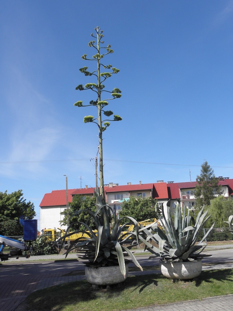 To niesamowite, że możemy kwitnącą agawę zobaczyć w Pieckach. Rośnie tam w towarzystwie innych agaw, ale jeszcze nie kwitnących.